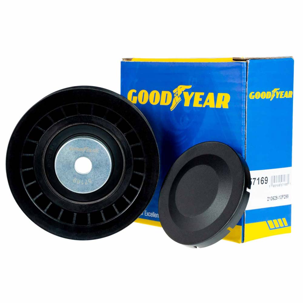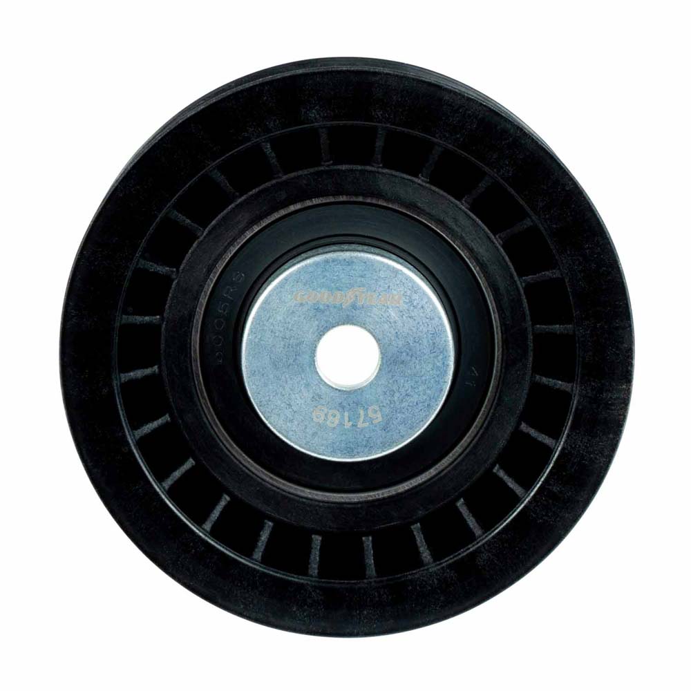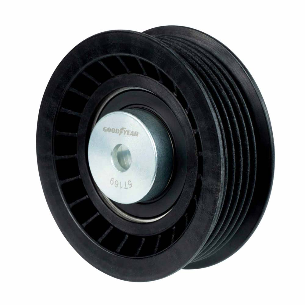 Goodyear Belt Drive Idler/Tensioner PulleyGoodyear Belts' tensioners and pulleys are designed to provide complete support to an engine’s belt drive. Modern engine belt drives work tirelessly, transferring power from an engine’s crankshaft to all the important accessories that keep a vehicle running and driving smoothly and comfortably down the road. High mileage engines lose efficiency from worn ball bearings, improper tension, and misalignment. To ensure proper belt drive performance, install Goodyear Belts’ tensioners and pulleys.