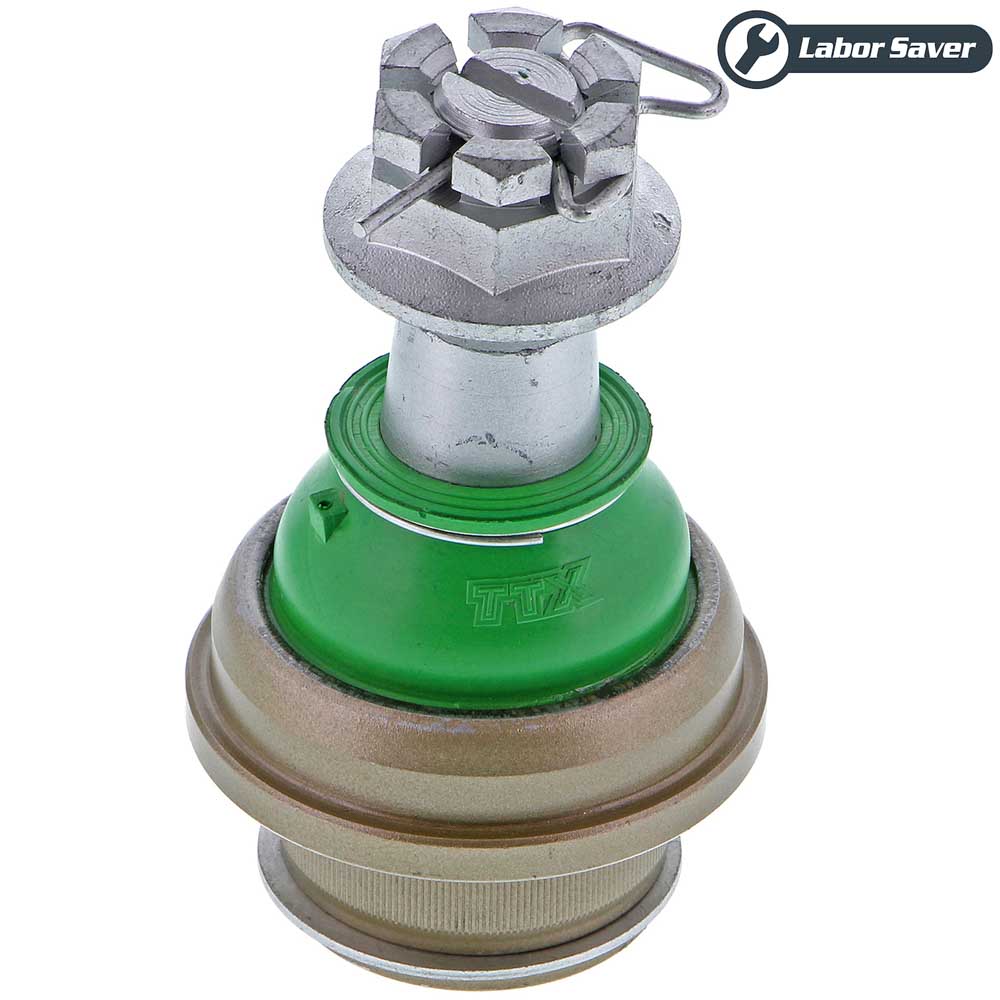 Mevotech TTX™ parts are engineered with cutting-edge technology to be the strongest, most durable parts on the market. Built for high-usage commercial and passenger vehicles, SUVs, fleets and working trucks, TTX™ ball joints deliver extreme performance. Plus, innovative Labor Saver™ designs, tools and hardware make installations faster and easier.EASIER INSTALLATION: Quickly install the ball joint with the custom-designed adapter ring.SUPERIOR SEAL: Lock out moisture and contaminants with Integri-Boot™ design built into the ball joint assembly.ACCURATE FIT: Easily and accurately press fit the ball joint into the larger flange diameter.EXCEPTIONAL FIT AND FUNCTION: Prevent deformation during installation with this ball joint designed with a thicker, stronger flange.TIGHTER GRIP: Avoid distortion and corrosion with knurling that ensures a snugger fit between connecting points.MAXIMUM TOUGHNESS: Get longer-lasting performance from patented sintered bearings.QUICK AND EASY INSTALLATION: Simply secure ball joint to the vehicle with part specific slotted castle nut & easy snap cotter pin provided.SIMPLE TO SERVICE: Make servicing a snap with the 180 degree SAE grease fitting included.LARGER SPHERE DESIGN: Optimize performance with an application-specific ball stud system with larger sphere.A STRONGER BOND: Keep fasteners secure and vibration resistant with pre-applied nylok thread adhesive.